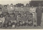 Jugadores del equipo de fútbol del club, acompañados del jefe del retén de carabineros, David Muñoz. Entre los deportistas se encuentran: Manuel Ayancán, Juan Paiñel, Santibañez, Denis Santibañez, Hernán Peralta, Carlos Uribe, Ernesto Díaz, Freddy Schenke, Eliseo Castillo y Luis Morales. Fotografía tomada en la cancha de La Pincoya, cercana al restaurante del mismo nombre, donde actualmente se encuentra la empresa Dupont.