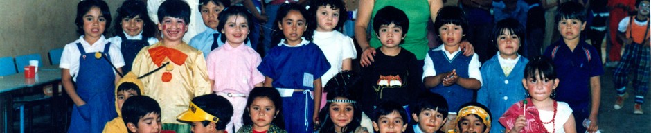 Celebración en el jardín infantil de la Escuela D- 95. Junto a los niños se encuentra la educadora de párvulos Dolly Esquivelen.