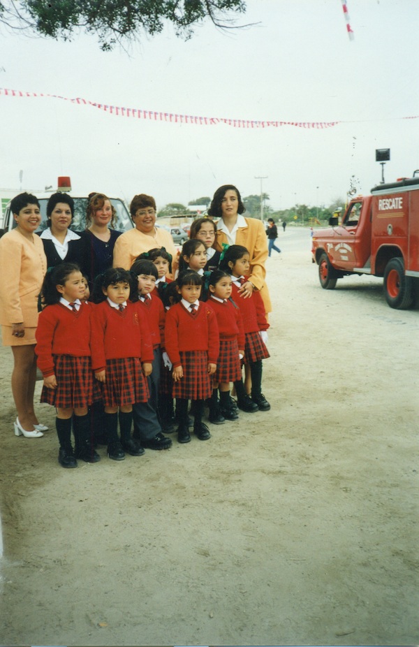 Estudiantes de la Escuela Particular Tongoy posan para una fotografía frente a la plaza Pizarro, luego de un desfile.