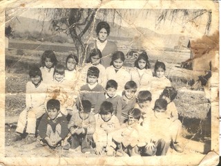 Niñas y niños del pueblo rural de Coquimbito junto a su profesora.
