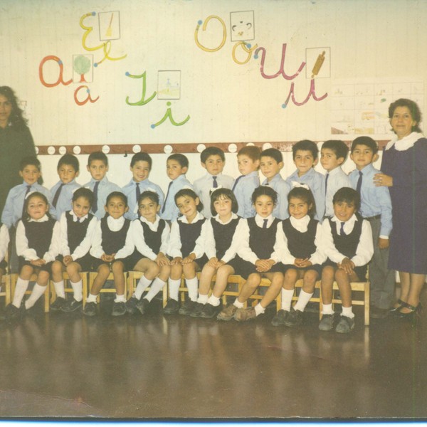 La educadora de párvulos, Leticia Flores, y sus alumnos de la generación de 1996.