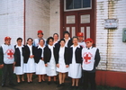 Voluntarios de la Cruz RojaIntegrantes de la Cruz Roja de Río Bueno posan afuera del cuartel junto a los miembros de la Estudiantina..