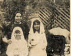 Festejos de primera comunión en casa de Juan San Martín. Las niñas Rosa y Sonia Cerda, aparecen junto a su madrina Flor Jaramillo.
