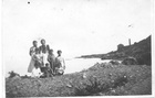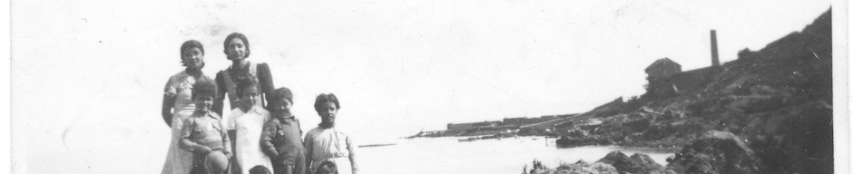 Integrantes de la familia disfrutan de un paseo en la playa Los Bañitos. Al fondo, se aprecia la fundición de minerales de Tamaya que estaba en proceso de cierre.