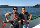 Mauricio Barriga y Alan Alvarado, amigos de toda la vida, dando un paseo a Corral.