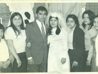 Matrimonio Pereira AlfaroLos novios, Mario Pereira y Peggi Alfaro, junto a los padrinos de la boda, Modesto y Teresa Antiguera.