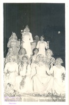 Carro alegórico que trasladaba a Alfonso Lisboa, como reina y su corte de honor, compuesta por: Santiago Benito, Julio Lisboa, Juan Oliver, José Luis Fernández, Lionel Dithurbide, Isaúl de las Llana, Sergio Andueza, Vicente García Antonio Bakulic y Francisco Matta. Al fondo, se aprecia un organillero.