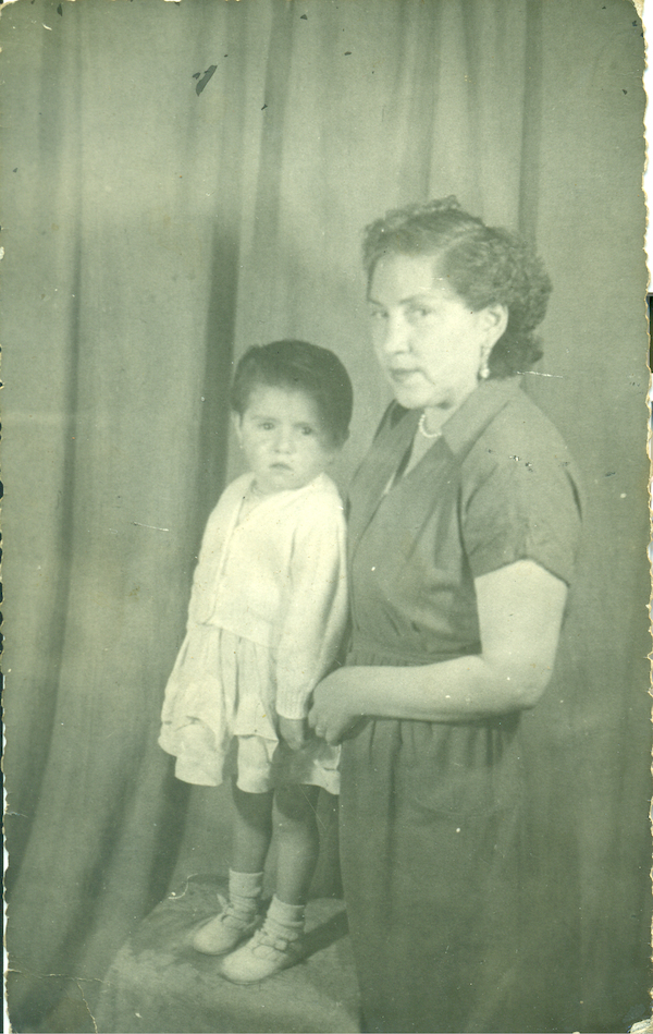 María de Gracia Oyarzún Linares junto a su hija, Haydeé Vivar Oyarzún. Fotografía tomada en un estudio fotográfico ubicado en la calle Antonio Varas.